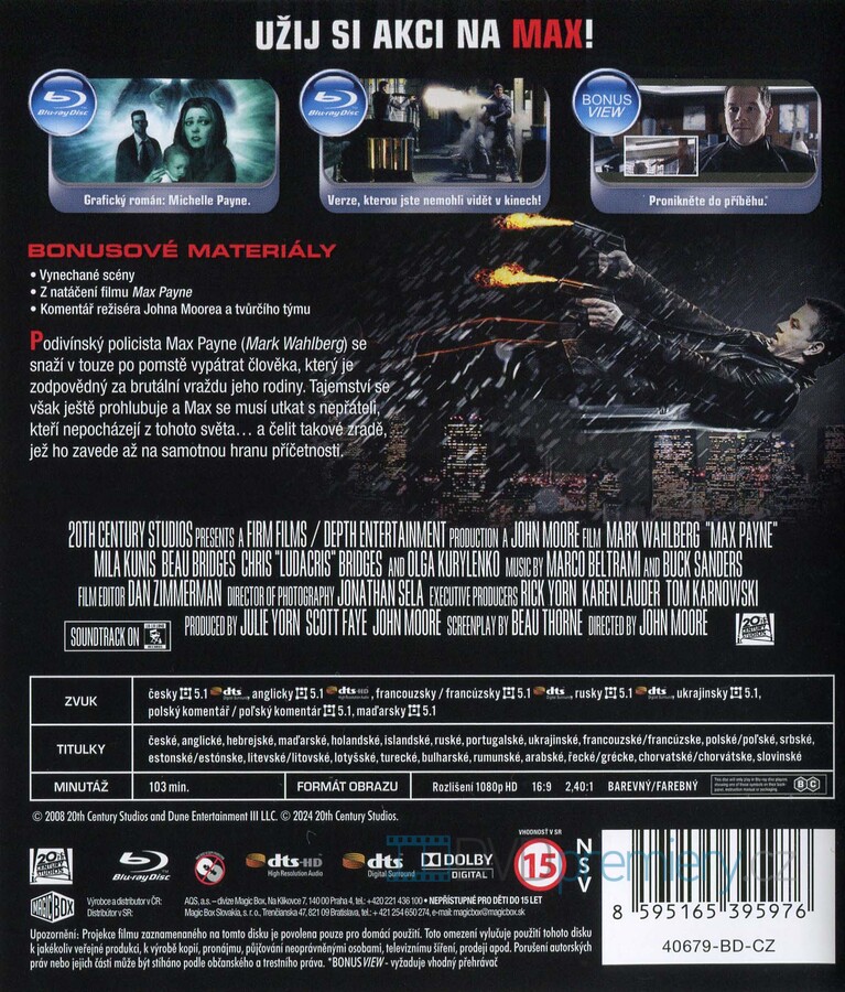 Blu-ray film Max Payne HD [2008]. Český dabing. České titulky. Dolby Digital. Filmové zpracování známé počítačové hry. V hlavní roli Mark Walhberg.