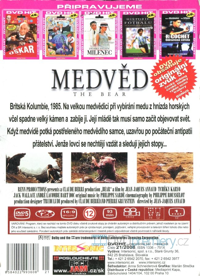 Jeden z nejkrásnějších filmů o zvířatech. Přátelství osiřelého medvědího mláděte a hrozivého medvědího samotáře.