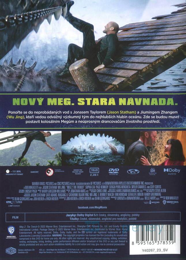 DVD film Meg 2: Příkop [2023]. Český dabing. České titulky. Dolby Digital. Hrají: Jason Statham. Připravte se na dokonalý adrenalin s několika obřími Megy a mnohem víc.