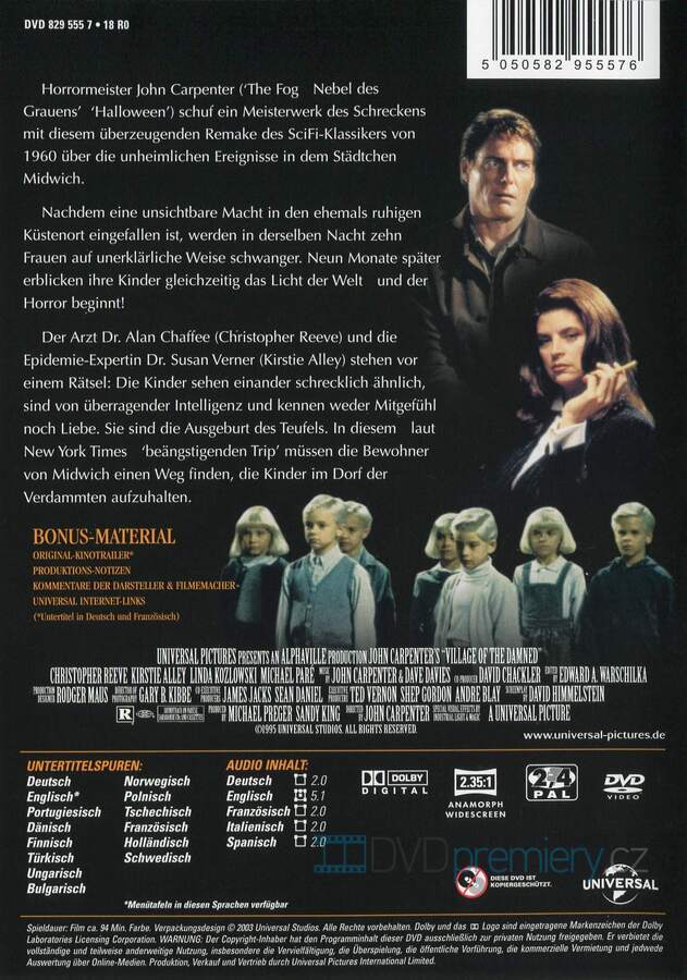 DVD film Městečko prokletých [1995]. České titulky. Dolby Digital. Dovoz. Záhadné děti bez emocí ohrožují Midwich. Lékaři proti nadpřirozenému zlu. Napínavé drama!