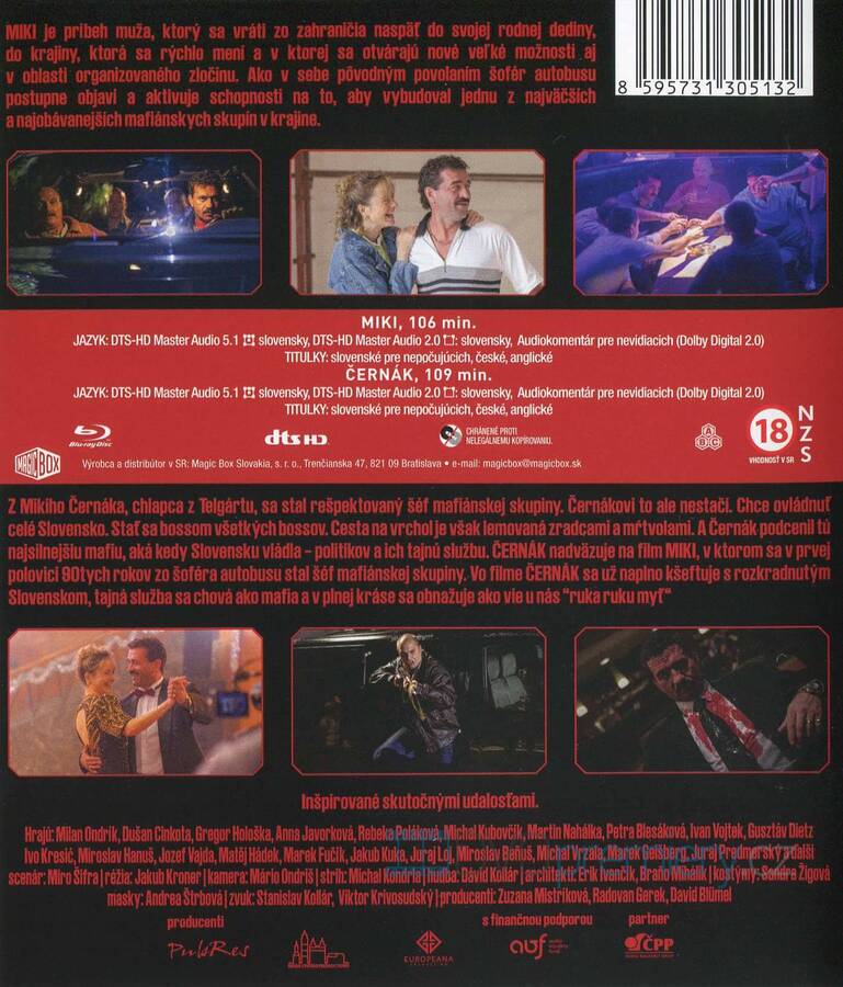 Blu-ray kolekce obsahuje filmy Miki a Černák. České titulky. Strhující příběh vzestupu a pádu mafiánského bosse Mikuláše Černáka, který ovládl divoká 90. léta bezohlednou cestou k moci.