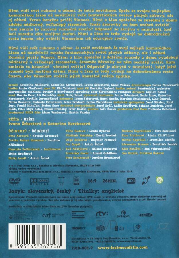 DVD film Mimi a Líza: Záhada vánočního světla [2018]. Česko-slovenský film. Český dabing. Dolby Digital. Proč nesvítí stromeček? Nevidomá Mimi a Liza musí odhalit tajemství z minulosti. Vydejte se s nimi na kouzelnou cestu časem za vánoční magií!