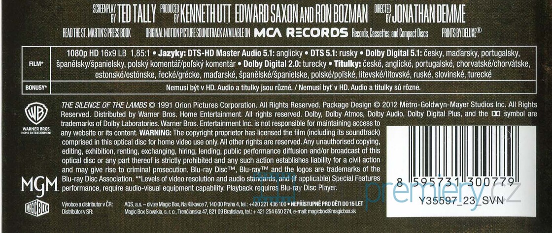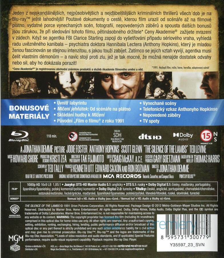 Blu-ray film Mlčení jehňátek HD [1991]. Český dabing. České titulky. Dolby Digital. Agentka FBI Clarice hledá pomoc u vězněného kanibala Lectera, aby dopadla sériového vraha, zatímco čelí vlastním démonům.