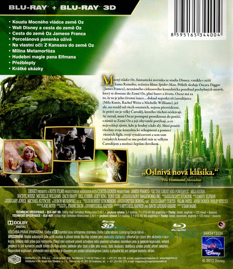 3D Blu-ray film Mocný vládce Oz HD [2013]. Český dabing. České titulky. Dolby Digital. Mocný vládce Oz, fantastická novinka ze studia Disney, vznikla v režii Sama Raimiho, režiséra filmu Spider-Man.