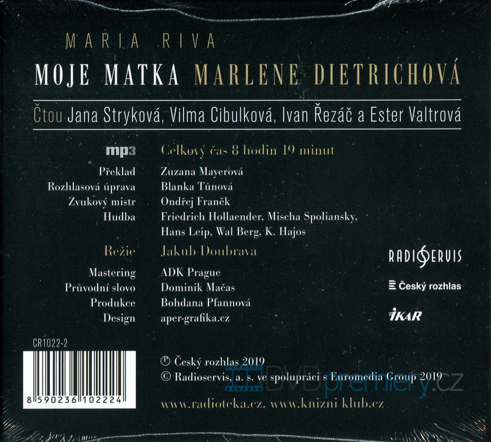 Audioknihu Moje matka Marlene Dietrichová čtou Jana Stryková, Vilma Cibulková, Ivan Řezáč a Ester Valtrová.