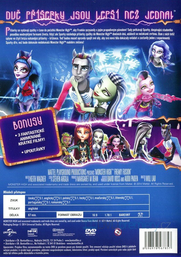 Příšerky se vydávají zpátky v čase do počátků Monster High, aby Frankie seznámily s jejím prapodivným původem! Tady potkávají Sparky, dospívající studentku posedlou neobvyklými formami života. Když ale Sparky následuje příšerky zpátky do Monster High dnešních dnů, události se nečekaně zvrtnou. Osm z nich totiž splyne ve čtyři hrůzu nahánějící příšerky – křížence. Teď budou muset opravdu spojit své síly, aby svá nová těla dokázaly ovládat a zastavily jeden z experimentů Sparky dřív, než bude dokonale nedokonalá Monster High nadobro zničena!