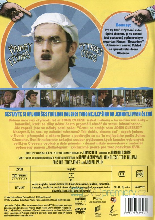 Bonusy: Pro ty, kteří z Pythonů viděli úplně všechno, je tu osobní test sestavený pythonovským expertem Kimem “Howardem” Johnsonem a navíc Pohled na opravdového Johna Cleeseho.