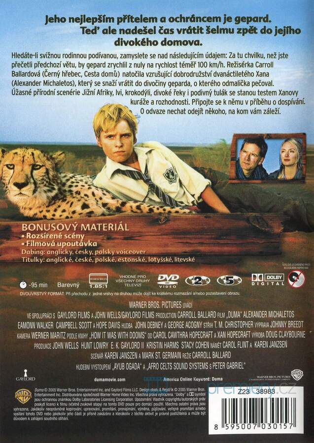 Hledáte-li svižnou rodinnou podívanou, zamyslte se nad následujícím údajem: Za tu chvilku, než jste přečetli předchozí větu, by gepard zrychlil z nuly na rychlost téměř 100 km/h. Režisérka Carroll Ballardová ( Černý hřebec, Cesta domů) natočila vzrušující dobrodružství dvanáctiletého Xana (Alexander Michaletos), který se snaží vrátit do divočiny geparda, o kterého odmalička pečoval. Úžasné přírodní scenérie Jižní Afriky, lvi, krokodýli, divoké řeky i podivný tulák se stanou testem Xanovy kuráže a rozhodnosti. Připojte se k němu v příběhu o dospívání. O odvaze nechat odejít někoho, na kom vám záleží.