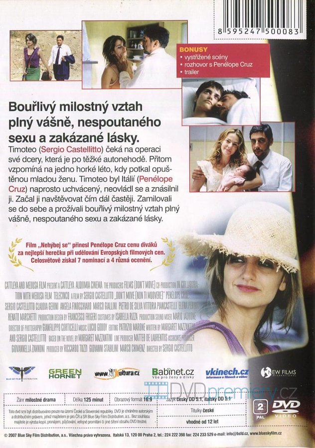 Bouřlivý milostný vztah plný vášně, nespoutaného sexu a zakázané lásky. Film „Nehýbej se“ vynesl Penélope Cruz cenu diváků za nejlepší herečku při udělování Evropských fi lmových cen. Celosvětově získal 7 nominací a 4 různá ocenění.