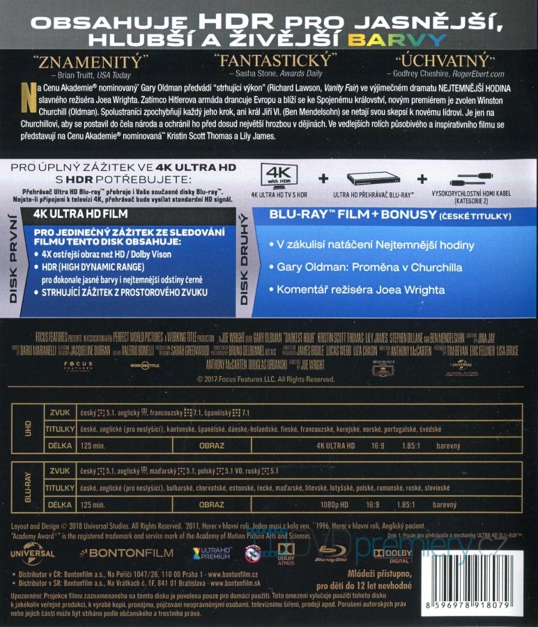 Užijte si jedinečný zážitek při sledování UHD BLU-RAY s filmem Nejtemnější hodina nyní 4x ostřejší než v rozlišení HD. Zdarma je také přiložen FULL HD BLU-RAY disk s filmem.