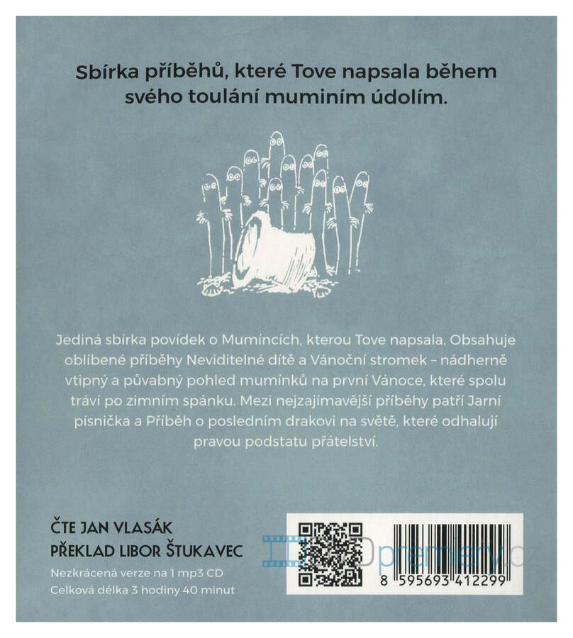 Audiokniha od autora: Tove Janssonová, čte: Jan Vlasák. Délka nahrávky: 3 hodiny, 40 minut. Kouzelné mumínkovské povídky o přátelství, Vánocích a dobrodružství z pera samotné Tove Jansson.