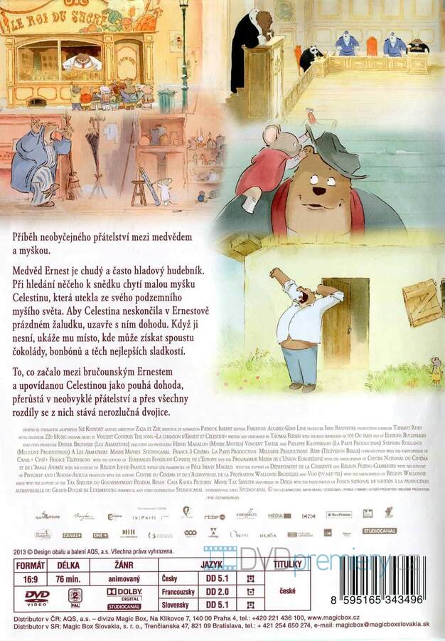 Medvěd Ernest je chudý a často hladový hudebník. Při hledání něčeho k snědku chytí malou myšku Celestinu, která utekla ze svého podzemního myšího světa. Aby Celestina neskončila v Ernestově prázdném žaludku, uzavře s ním dohodu. Když ji nesní, ukáže mu místo, kde může získat spoustu čokolády, bonbónů a těch nejlepších sladkostí. To, co začalo mezi bručounským Ernestem a upovídanou Celestinou jako pouhá dohoda, přerůstá v nebovyklé přátelství a přes všechny rozdíly se z nich stává nerozlučná dvojice.