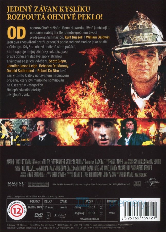 DVD film Oheň [1991]. Český dabing. České titulky. Dolby Digital. Jediný závan rozpoutá ohnivé peklo. V hlavní rolích Kurt Russell a William Baldwin a Robert De Niro.