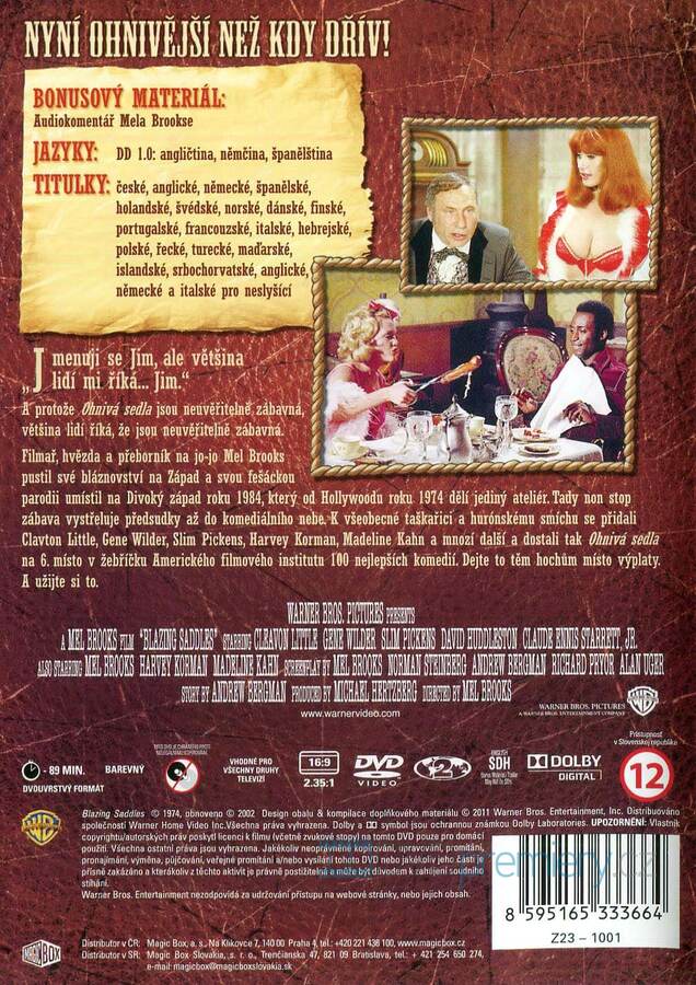 DVD film Ohnivá sedla [1974]. České titulky. Dolby Digital. Mel Brooks, se tentokrát vydal na divoký Západ roku 1974, který je až nebezpečně podobný Hollywoodu roku 1974 se vší jeho legrací a nekonečným proudem zábavy.