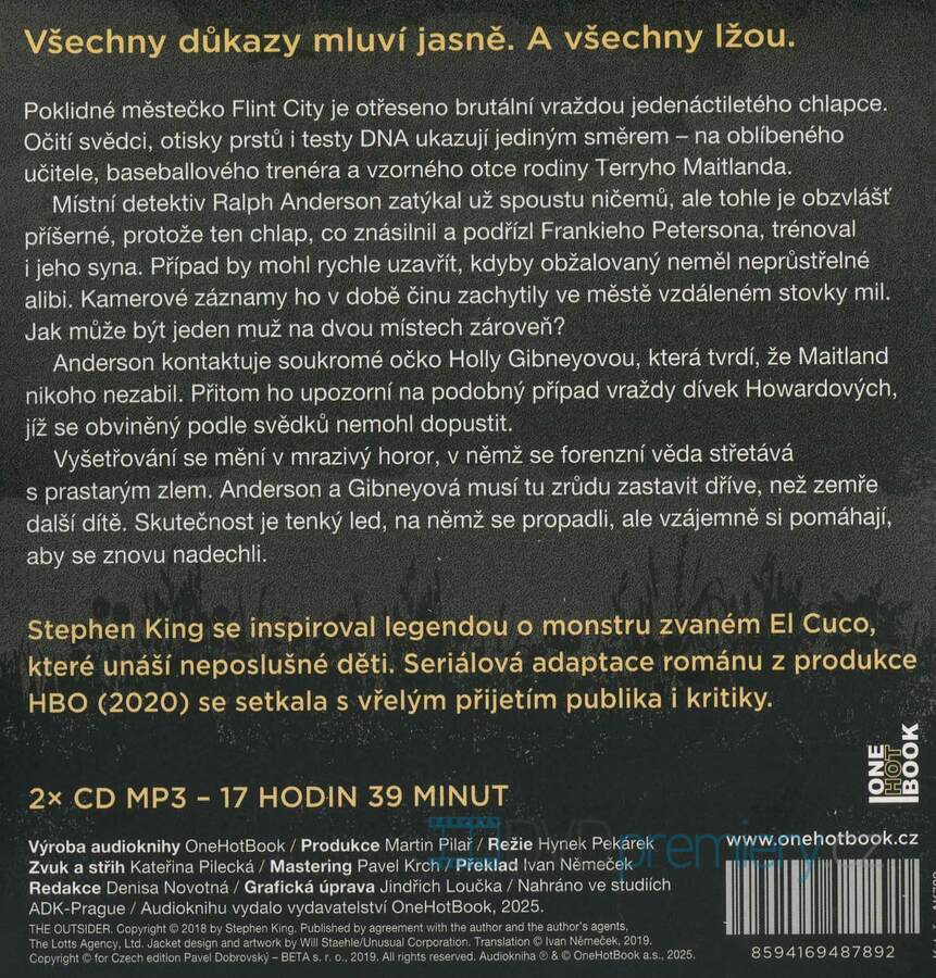 Poklidné městečko Flint City je otřeseno brutální vraždou jedenáctiletého chlapce. Očití svědci, otisky prstů i testy DNA ukazují jediným směrem – na oblíbeného učitele, baseballového trenéra a vzorného otce Terryho Maitlanda. Místní detektiv Ralph Anderson zatýkal už spoustu ničemů, ale tohle je obzvlášť příšerné, protože chlap, co znásilnil a podřízl Frankieho Petersona, trénoval i jeho syna. Případ by mohl rychle uzavřít – kdyby obžalovaný neměl neprůstřelné alibi. Kamerové záznamy ho v době činu zachytily ve městě vzdáleném stovky mil. Jak může být jeden muž na dvou místech zároveň? Anderson se obrátí na soukromé očko Holly Gibneyovou, která dokáže vidět vzorce a propojení tam, kde logika selhává. Ta ho upozorní na podobný záhadný případ vraždy dvou dívek. Vyšetřování se rázem mění v mrazivý horor, v němž se forenzní věda střetává s prastarým zlem. Anderson s Gibneyovou musí zrůdu zastavit dříve, než zemře další dítě.