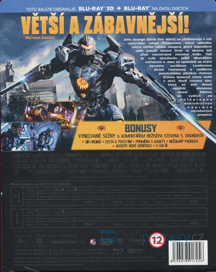 Vychutnejte si jedinečný zážitek ve 3D v pohodlí domova s filmem Pacific Rim 2: Povstání. Zdarma je také přiložen BLU-RAY s 2D verzí filmu. 3D verze filmu bude vydaná pouze ve verzi STEELBOOK. Varianta v plastové krabičce se neplánuje!!