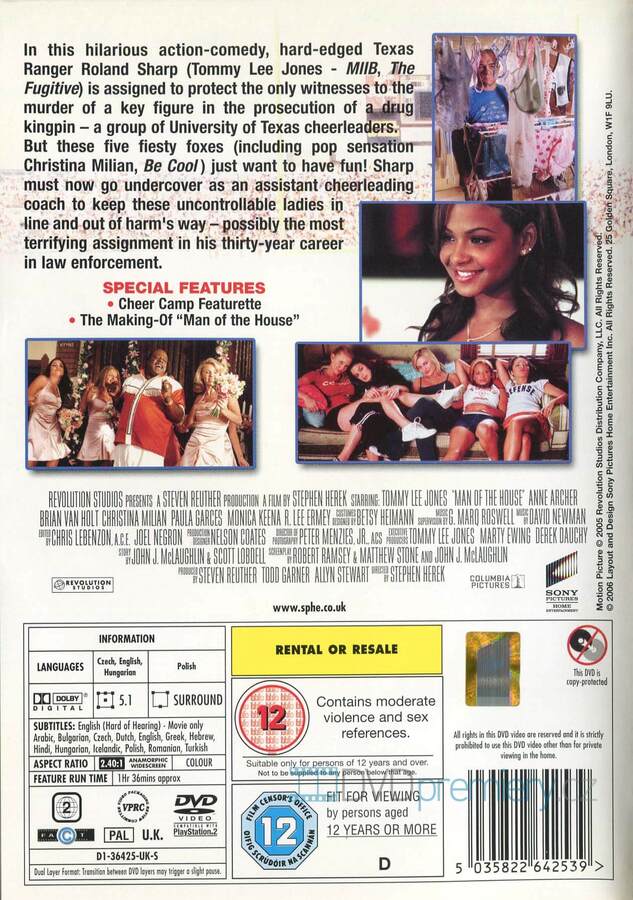 DVD film Pán Domu [2005]. Český dabing. České titulky. Dolby Digital. Dovoz. Texaský ranger jako trenér roztleskávaček? Tommy Lee Jones v šílené komedii, kde ochrana svědkyň = naprostý chaos!