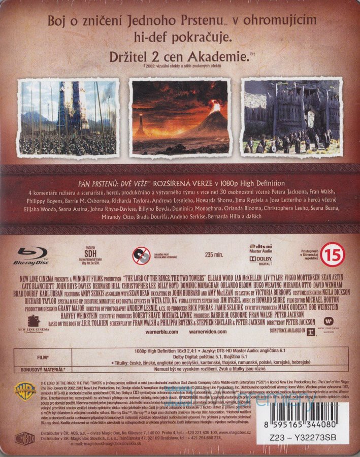 Blu-ray film Pán prstenů: Dvě věže HD [2002]. České titulky. Dolby Digital. Steelbook - prodloužená verze. Po rozpadu Společenstva putuje Frodo s Prstenem do Mordoru. Aragorn zachraňuje hobbity. Temné síly útočí.