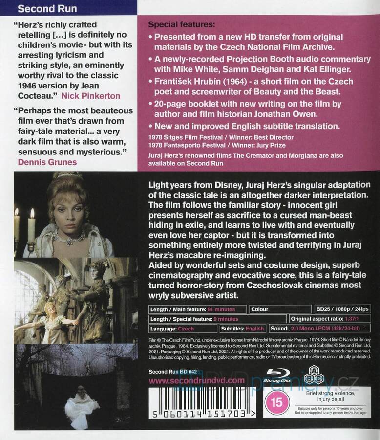 Světelné roky od Disneyho, jedinečná adaptace klasického příběhu od Juraje Herze je celkově temnější interpretací. Film sleduje známý příběh – nevinná dívka se obětuje prokletému muži-zvířeti skrývajícímu se v exilu a naučí se žít se svým únoscem a nakonec ho dokonce milovat – ale v Jurajově Herzově makabrózní reimaginaci se promění v něco mnohem zvrácenějšího a děsivějšího. Díky nádherným kulisám a kostýmům, vynikající kameře a sugestivní hudbě je tento film pohádkou proměněnou v horor od nejironičtějšího a nejsubverzivnějšího umělce československé kinematografie.