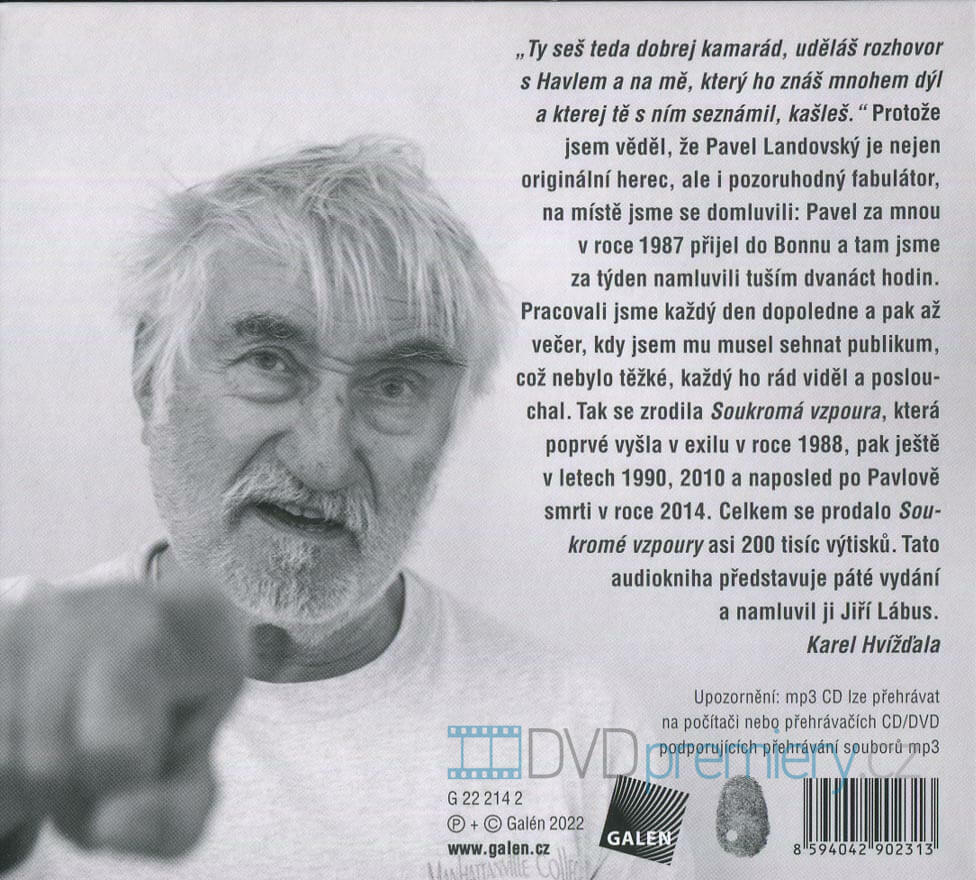 Pavel Landovský - Soukromá vzpoura, rozhovor s Karlem Hvížďalou. Celková stopáž: 5 hodin, 54 minut.