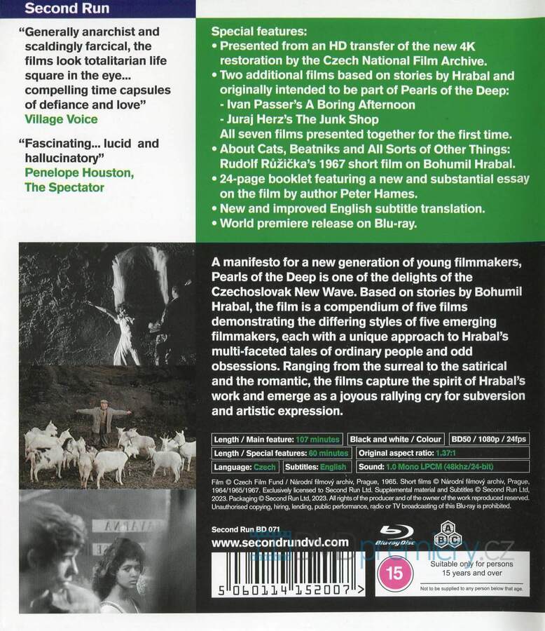 Blu-ray film Perličky na dně HD [1965]. Český film. Dolby Digital. Dovoz. Pět filmařů, pět příběhů, jeden Hrabal. Klenot československé nové vlny plný surrealismu, satiry a lidských podivností.