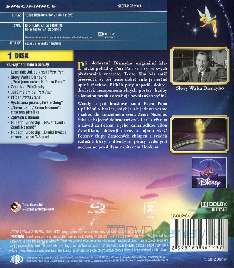 Blu-ray film Petr Pan HD [1953]. Český dabing. České titulky. Dolby Digital. Příběh, který ve vašich srdcích zůstane navždy.