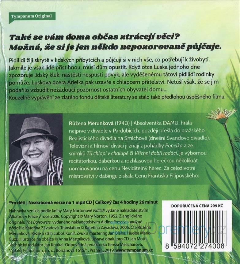 Autor: Mary Nortonová, Čte: Růžena Merunková. Pidilidi jsou bytůstky, které žijí potají v lidských příbytcích a půjčují si v nich vše, co potřebují k živobytí. Pa se ale pidilidí dívenka Arielka spřátelí s lidským chlapcem.