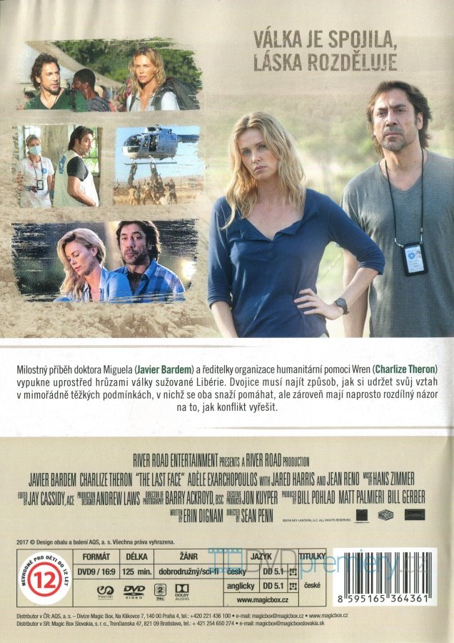 DVD film Poslední tvář [2016]. Český dabing. České titulky. Dolby Digital. Hrají: Charlize Theron, Javier Bardem. Válka je dala dohromady, láska je rozděluje. Film Seana Penna.