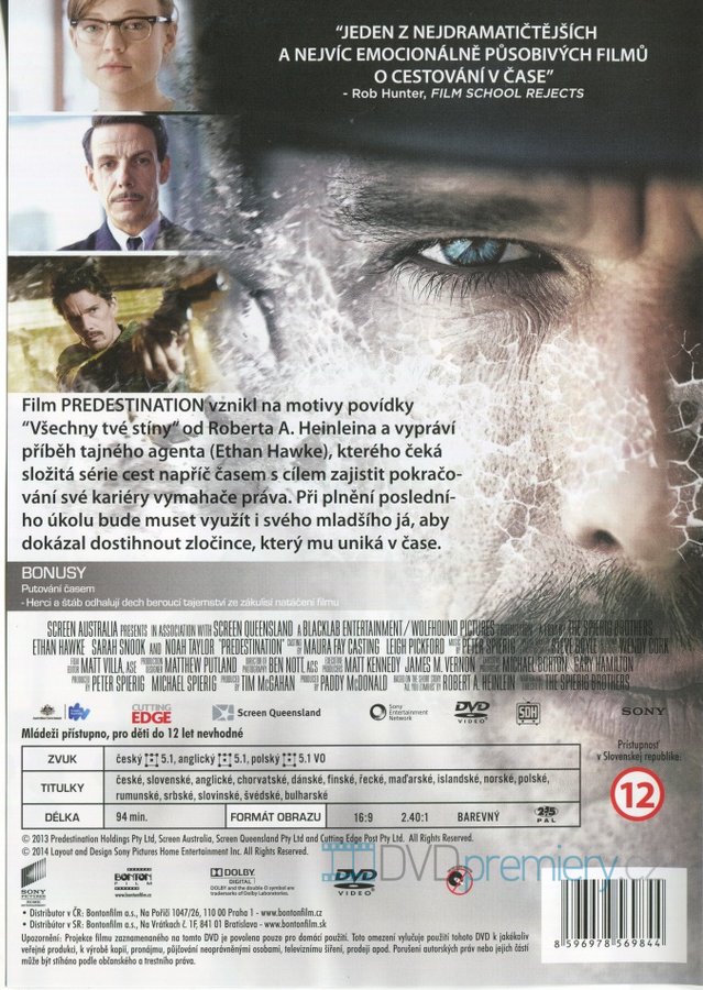 Film PREDESTINATION vznikl na motivy povídky “Všechny tvé stíny” od Roberta A. Heinleina a vypráví příběh tajného agenta (Ethan Hawke), kterého čeká složitá série cest napříč časem s cílem zajistit pokračování své kariéry...