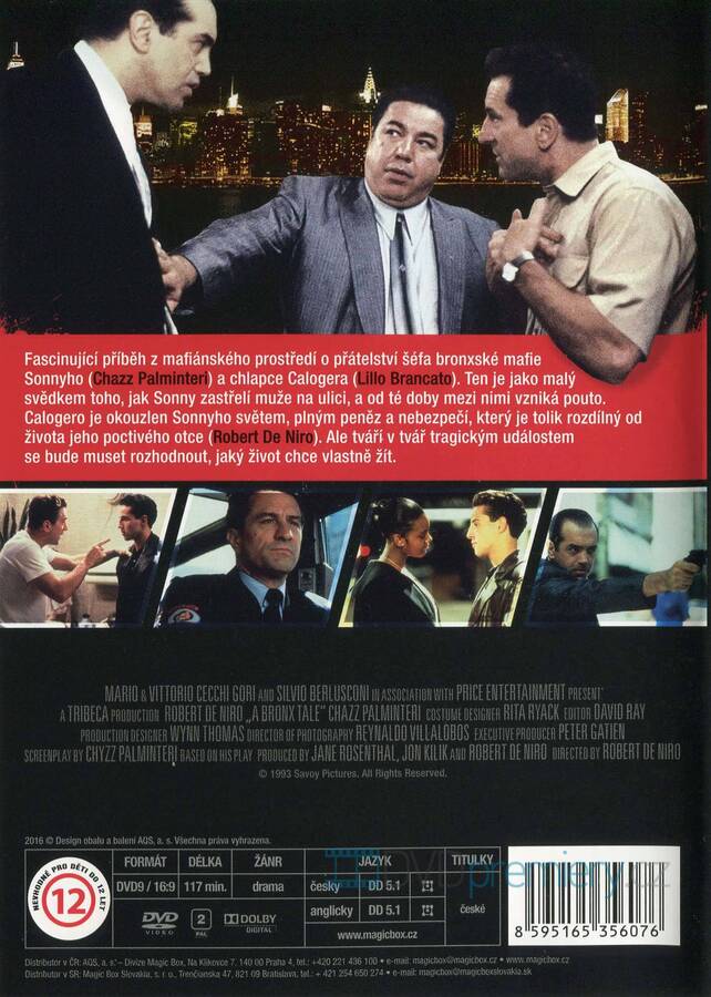 DVD film Příběh z Bronxu [1993]. Český dabing. České titulky. Dolby Digital. Hrají: XXX, XXX, XXX.