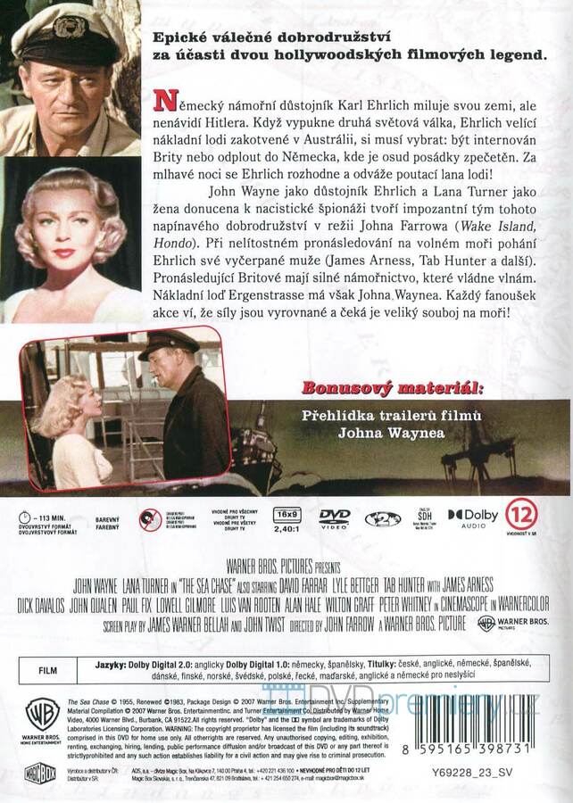 DVD film Pronásledování na moři [1955]. České titulky. Dolby Digital. Hrají: John Wayne, Lana Turner. Epické válečné dobrodružství za účasti dvou hollywoodských filmových legend.