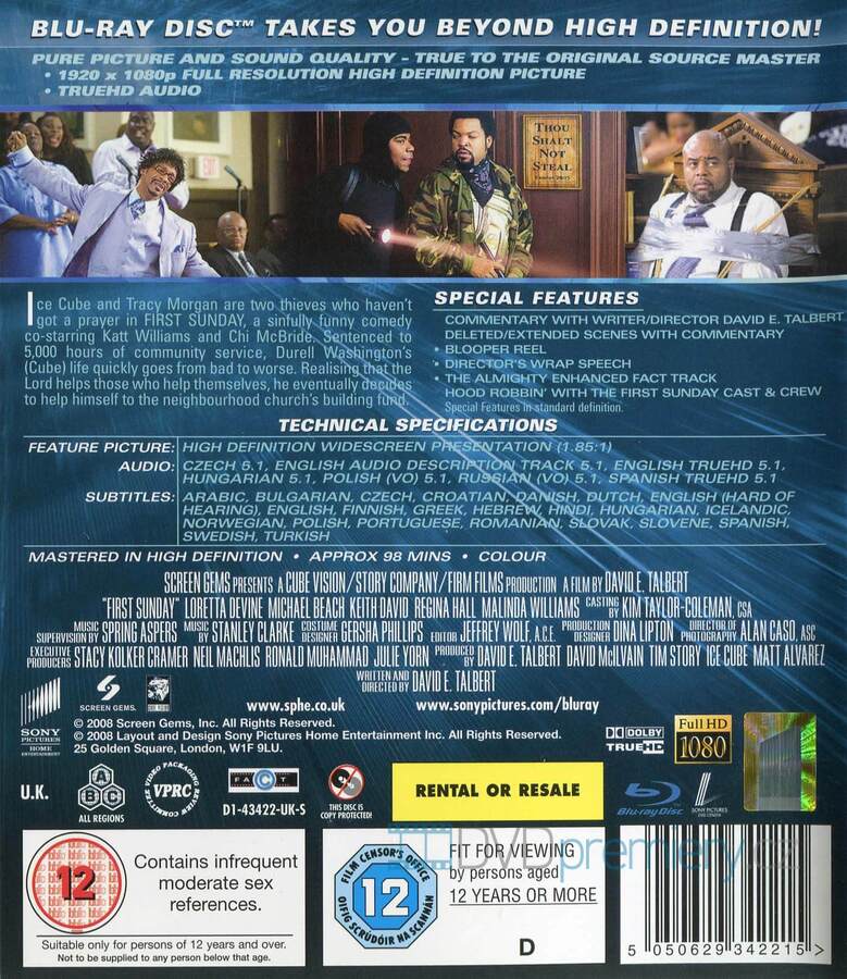 Blu-ray film První neděle HD [2008]. Český dabing. České titulky. Dolby Digital. Dovoz. Ice Cube a Tracy Morgan se představují v rolích dvou zlodějů v hříšně vtipné komedii První neděle.