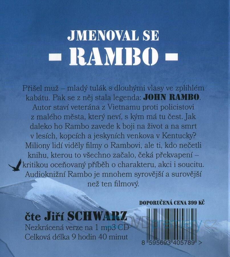 Audioknihu Rambo - První krev napsal autor: David Morrell, čte: Jiří Schwarz. Celková stopáž: 9 hodin, 40 minut.