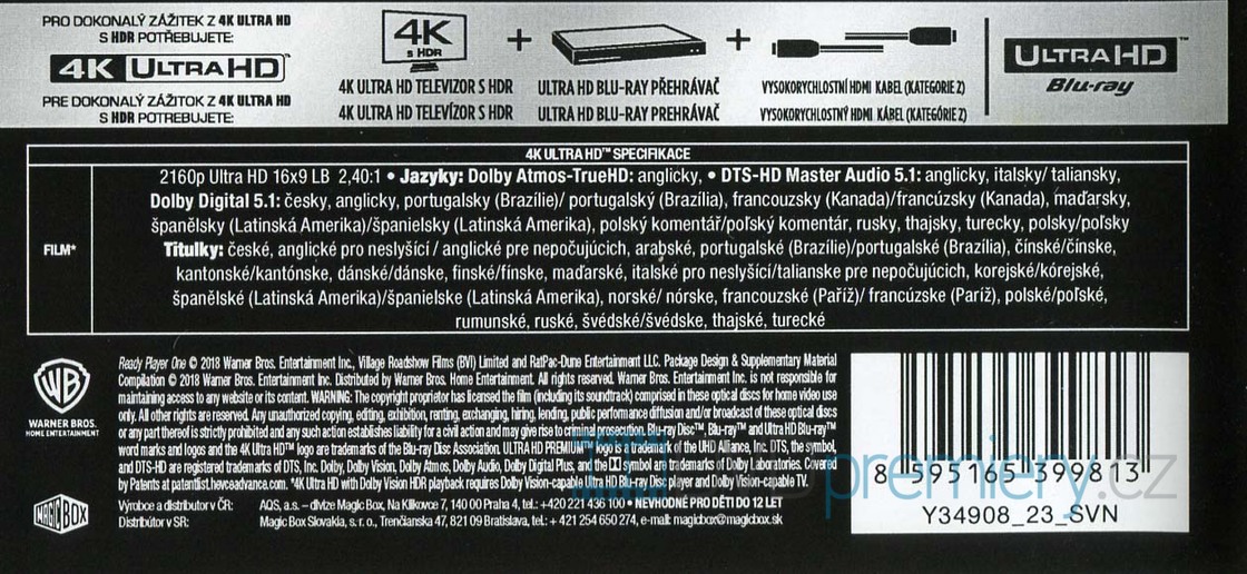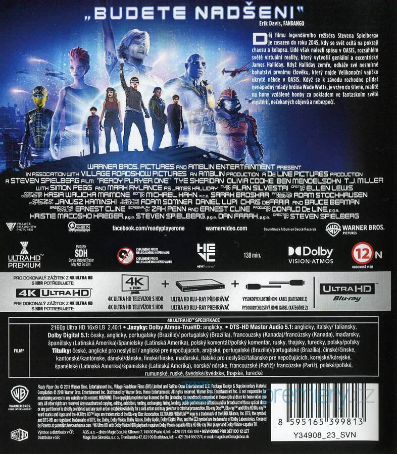 4K Blu-ray film Ready Player One: Hra začíná HD [2018]. Český dabing. České titulky. HDR. Dolby Digital. Dolby Atmos. V roce 2045 hledá Wade poklad ve virtuálním světě OASIS. Kdo najde Velikonoční vajíčko, získá obrovské bohatství.