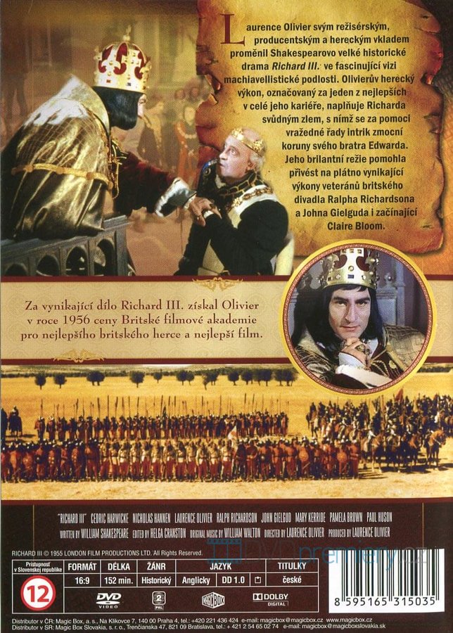 Laurence Olivier svým režisérským, producentským a hereckým vkladem proměnil Shakespearovo velké historické drama Richard III. ve fascinující vizi machiavellistické podlosti.