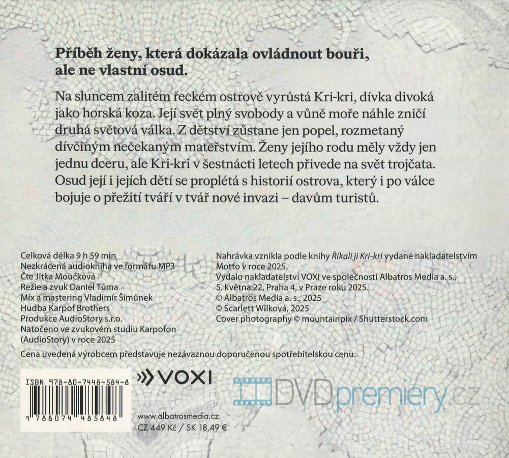 Audiokniha od autora: Scarlett Wilková, čte: Jitka Moučková. Délka nahrávky: 9 hodin, 59 minut. Divoká Kri-kri, ostrov plný svobody a válka, co změní vše. Příběh tří dcer a boje o přežití.