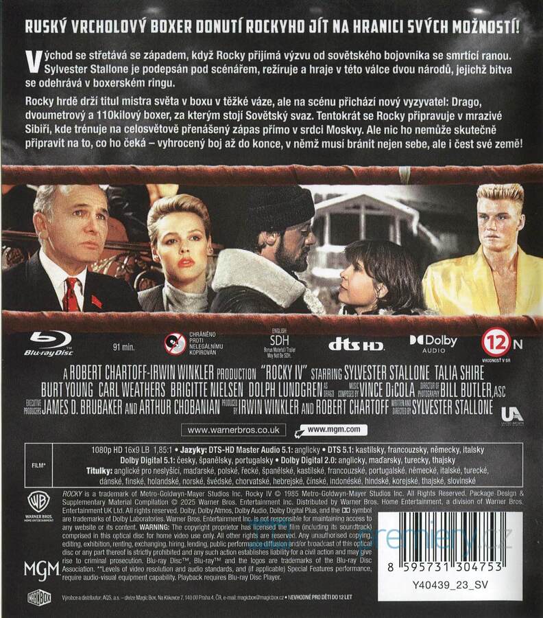 Blu-ray film Rocky 4 HD [1985]. Český dabing. Dolby Digital. Rocky vs. brutální sovětský boxer Drago! Epický souboj Východ vs. Západ v srdci Moskvy za čest celé země.
