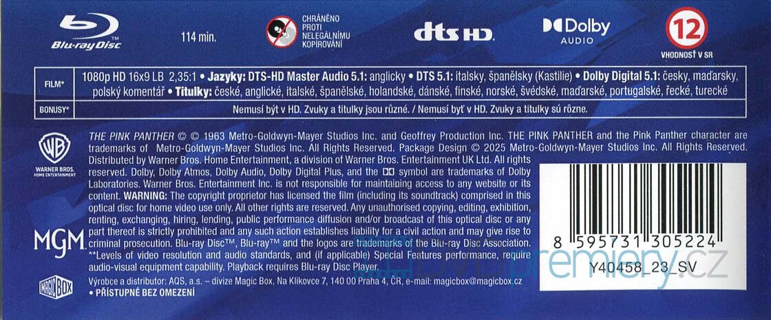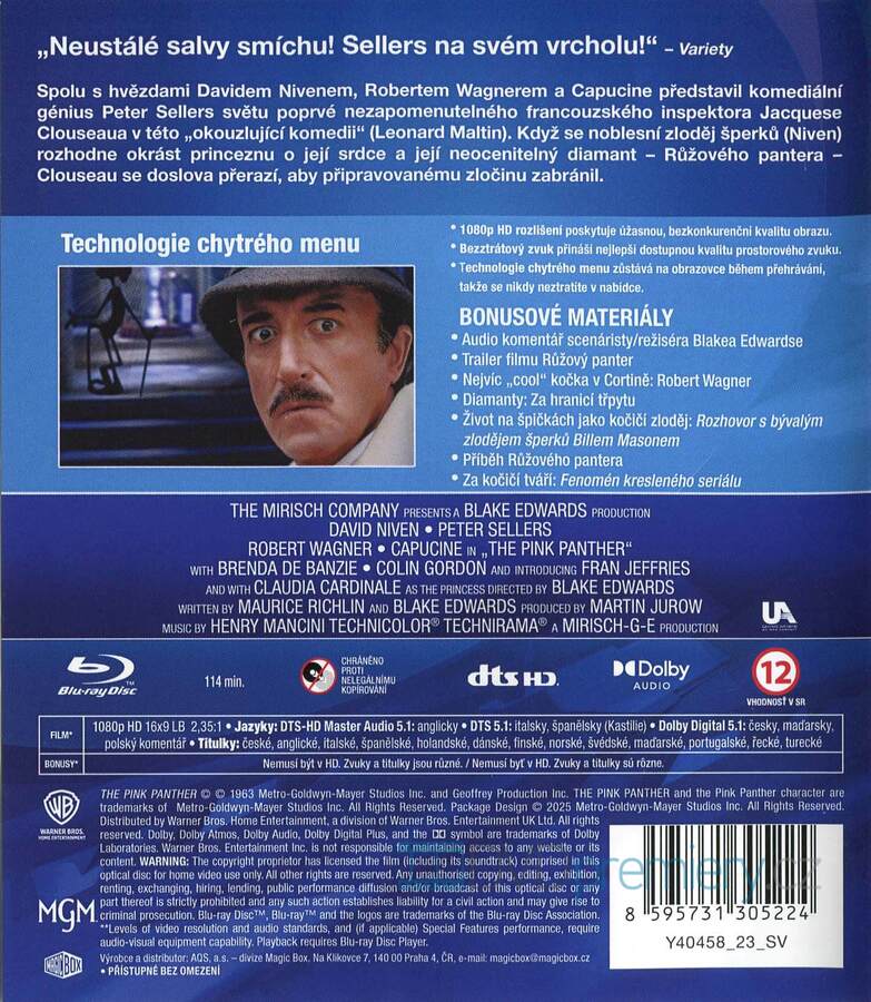 Blu-ray film Růžový panter HD [1963]. Český dabing. České titulky. Dolby Digital. Sexy princezna s cenným šperkem, šarmantní zloděj a nejnemotornější inspektor světa - Clouseau. Kdo koho přelstí?