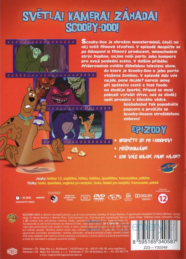 Scooby-Doo je ohrožen monstermánií, útočí na něj totiž filmová stvoření. V epizodě Neopičte se po lidoopovi si filmový producent, mimochodem strýc Daphne, najme naší partu jako kompars pro svoji poslední scénu. V dalším příběhu Příšerománie uvidíte ďábelskou televizní show, do které je Scooby-Doo a jeho parta vtažena Zombou. V epizodě Kdo vás najde, pane Hajde? narazí gang při zpáteční cestě z fast foodu na zloděje šperků. Případ se musí pokusit vyřešit dříve, než se zloděj opět promění v šíleného vědce. Úúúhahaha! Tak popadněte popcorn a prožijte se Scooby-Dooem strašidelnou zábavu!