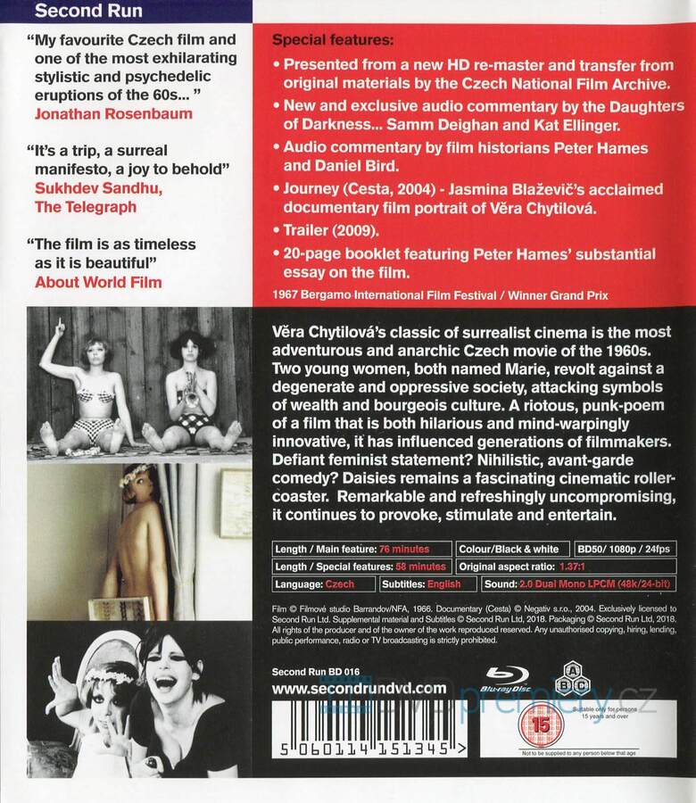 Blu-ray film Sedmikrásky HD [1966]. Český film. Dolby Digital. Dovoz. Revoluční, vtipný a provokativní – kultovní film Chytilové, který dodnes fascinuje a inspiruje celé generace.