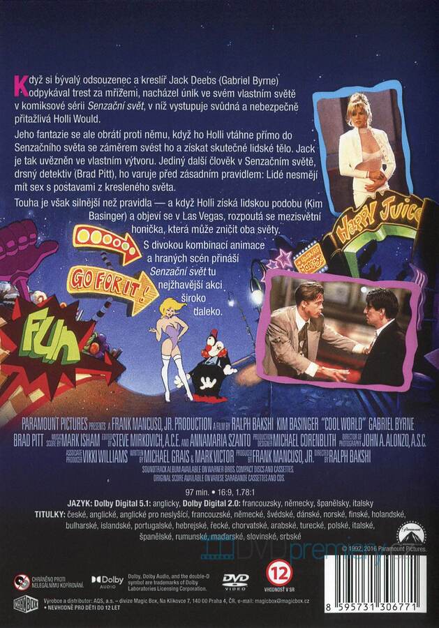 DVD film Senzační svět [1992]. České titulky. Dolby Digital. Kreslíř uvězněný ve vlastním komiksu. Svůdná hrdinka touží po lidském těle. Zakázaná touha může zničit oba světy.