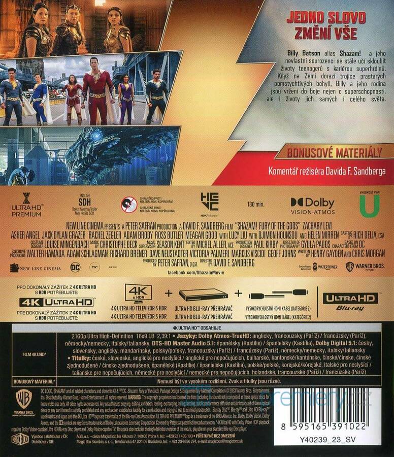 4K Blu-ray HD film Shazam 2: Hněv bohů [2023]. Český dabing. České titulky. HDR. Dolby Digital. Dolby Atmos. Hrají: Zachary Levi. Jedno slovo změní vše.
