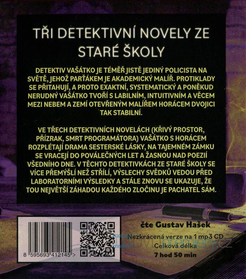 Audiokniha od autora: Hana Prošková, čte: Gustav Hašek. Délka nahrávky: 7 hodin, 50 minut. Tři detektivky ze staré školy: Vašátko a malíř Horác řeší záhady, kde víc než důkazy rozhoduje lidská mysl.