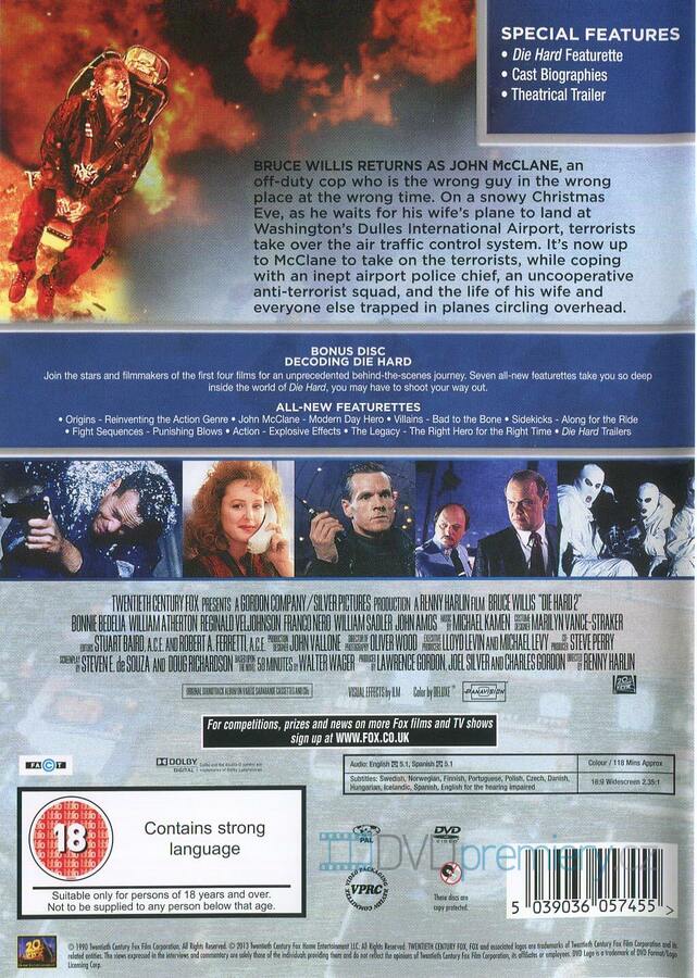 DVD film Smrtonosná past 2 [1990]. České titulky. Dolby Digital. Dovoz. Hrají: Bruce Willis. Pokračování úspěšného hitu z roku 1988. Teroristi tentokrát obsadili letiště.