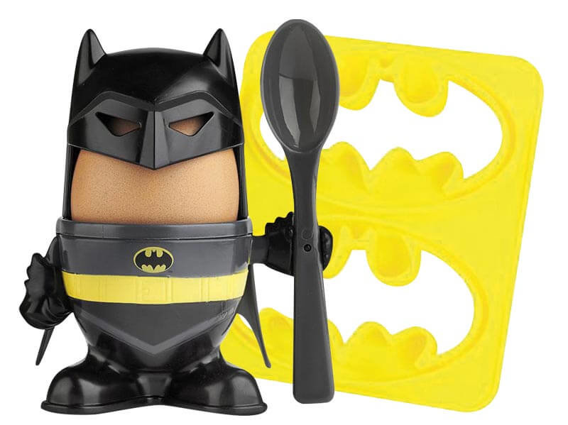Jezte uvařená vejce jako lord. Ehm, teda jako Batman! Oblečte vajíčko do kostýmu Batmana, Batarangovou formou si vysekněte toast do loga Batmana, vezměte lžičku a dobrou chuť.
