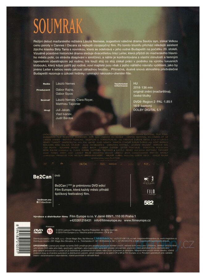 DVD film Soumrak [2018]. České titulky. Dolby Digital. Záhadná Budapešť, 1913. Mladá Irisz hledá svou minulost – a odkrývá temné tajemství, které pohřbívá celá říše.