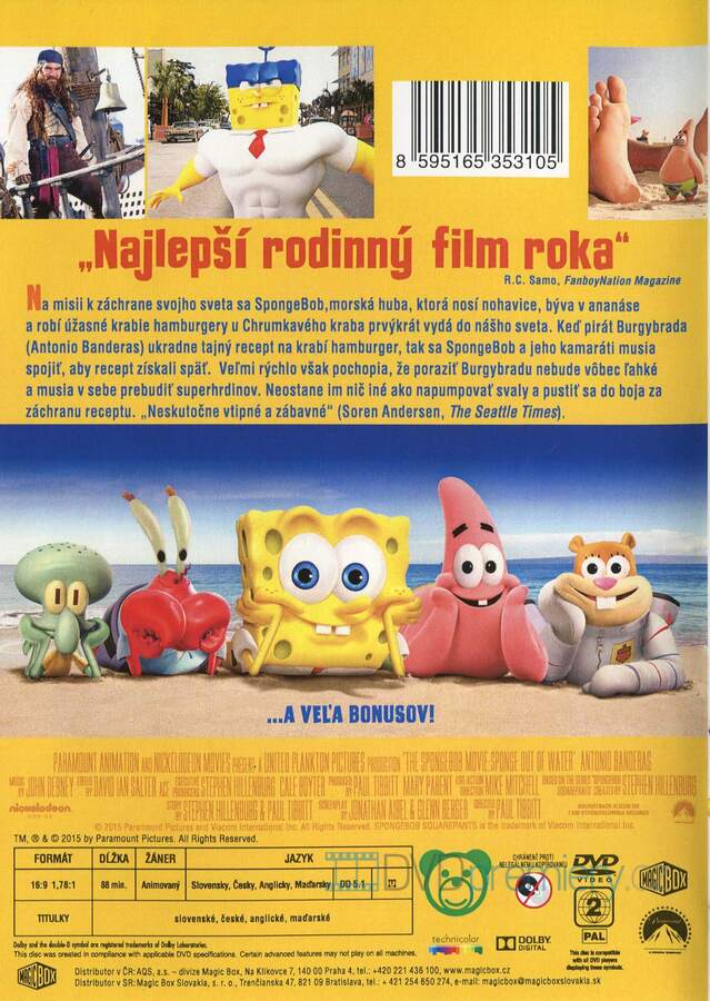 DVD film SpongeBob ve filmu: Houba na suchu [2015]. Český dabing. České titulky. Dolby Digital. Dovoz SK. Na misi k záchraně svého světa se SpongeBob v kalhotách vůbec poprvé vydá do toho našeho!