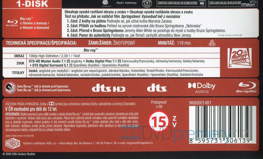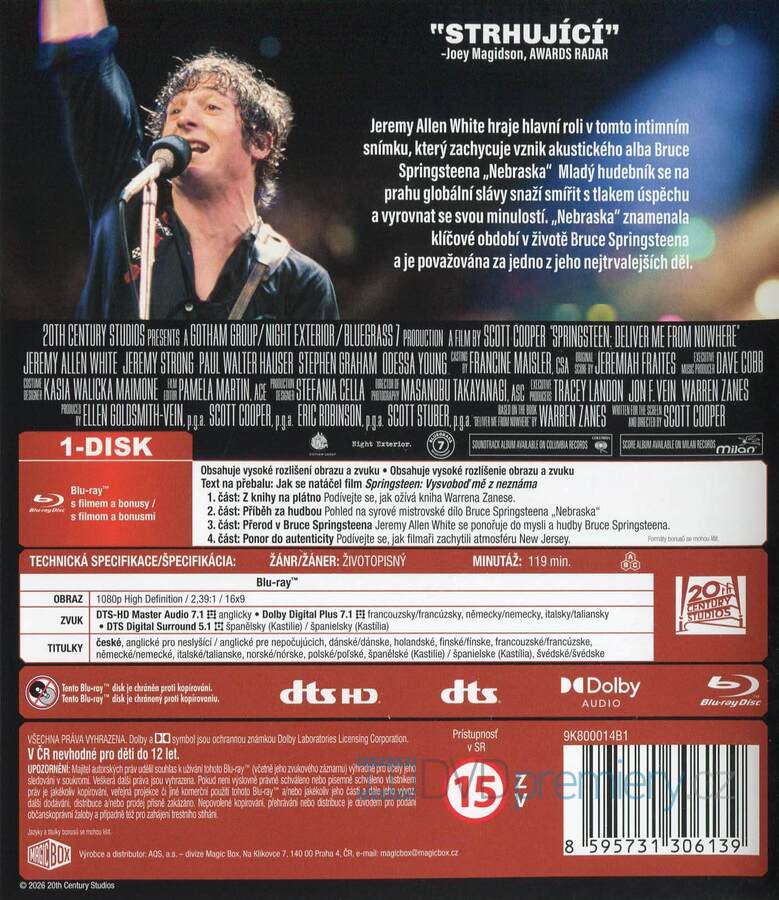 Blu-ray film Springsteen: Vysvoboď mě z neznáma HD [2025]. České titulky. Dolby Digital. Zrození ikony. Jeremy Allen White v roli Springsteena při nahrávání kultovního "Nebraska".