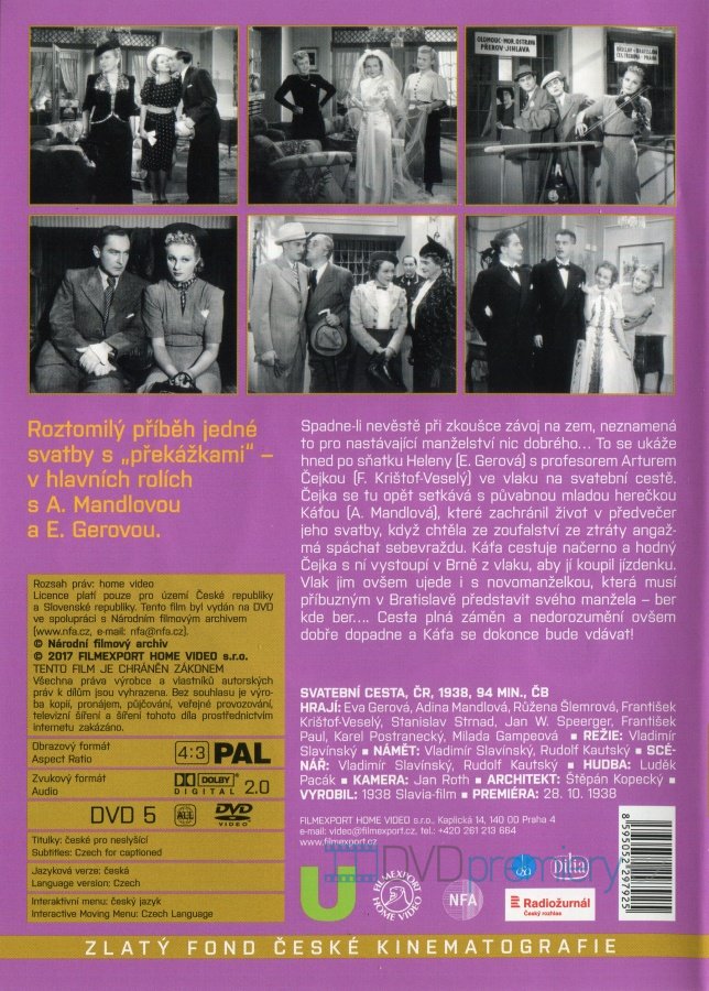 DVD film Svatební cesta [1938]. Československý film pro pamětníky. Dolby Digital. Roztomilý příběh jedné svatby s „překážkami“ – v hlavních rolích s A. Mandlovou a E. Gerovou.