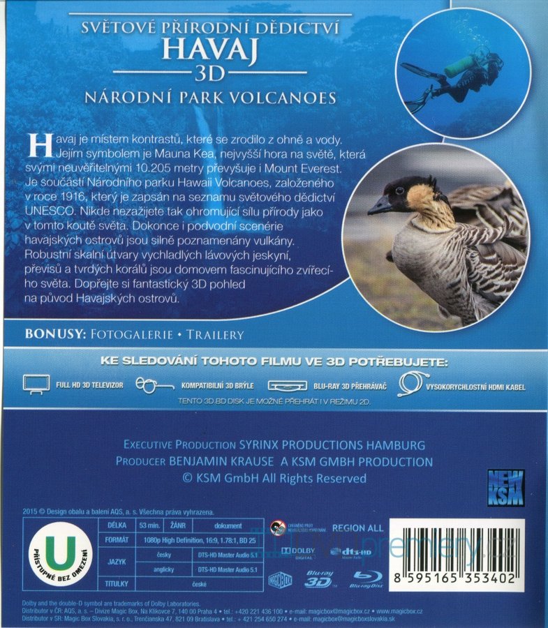 3D Blu-ray film Světové přírodní dědictví: Havaj - Národní park Volcanoes HD [2012]. Dokumentární film. Český dabing. České titulky. Dolby Digital.